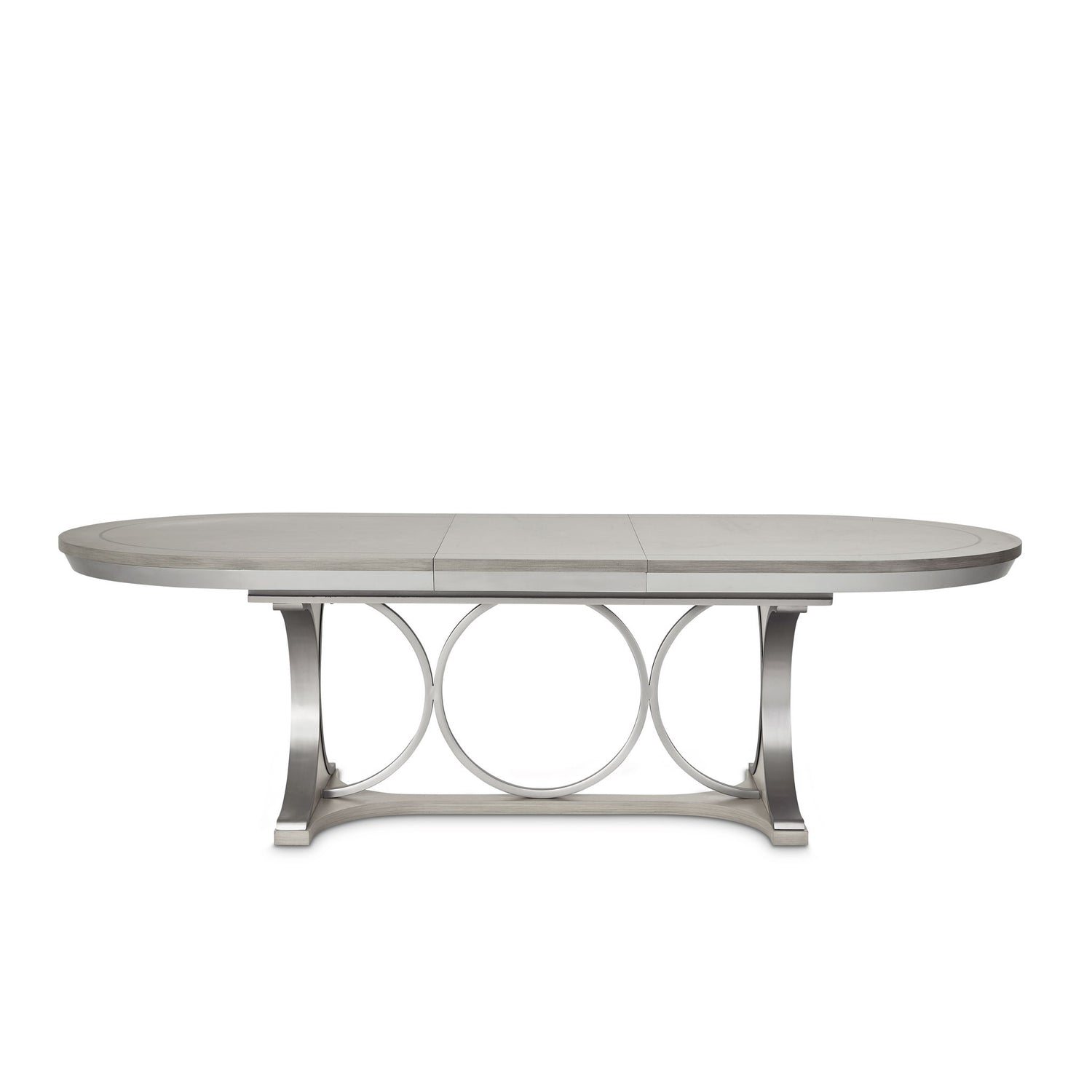 The definition of effortless modern style! The Eclipse Oval Dining Table brings a balance of smooth wood finishes and striking stainless steel accents. With one leaf included, this table is perfect for small dinners and family parties alike!