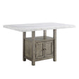 Refined rustic styling brings an elegant casual feel to dining in the Grayson Counter Table. Features a beautiful white marble top with ample storage in the driftwood finished base.