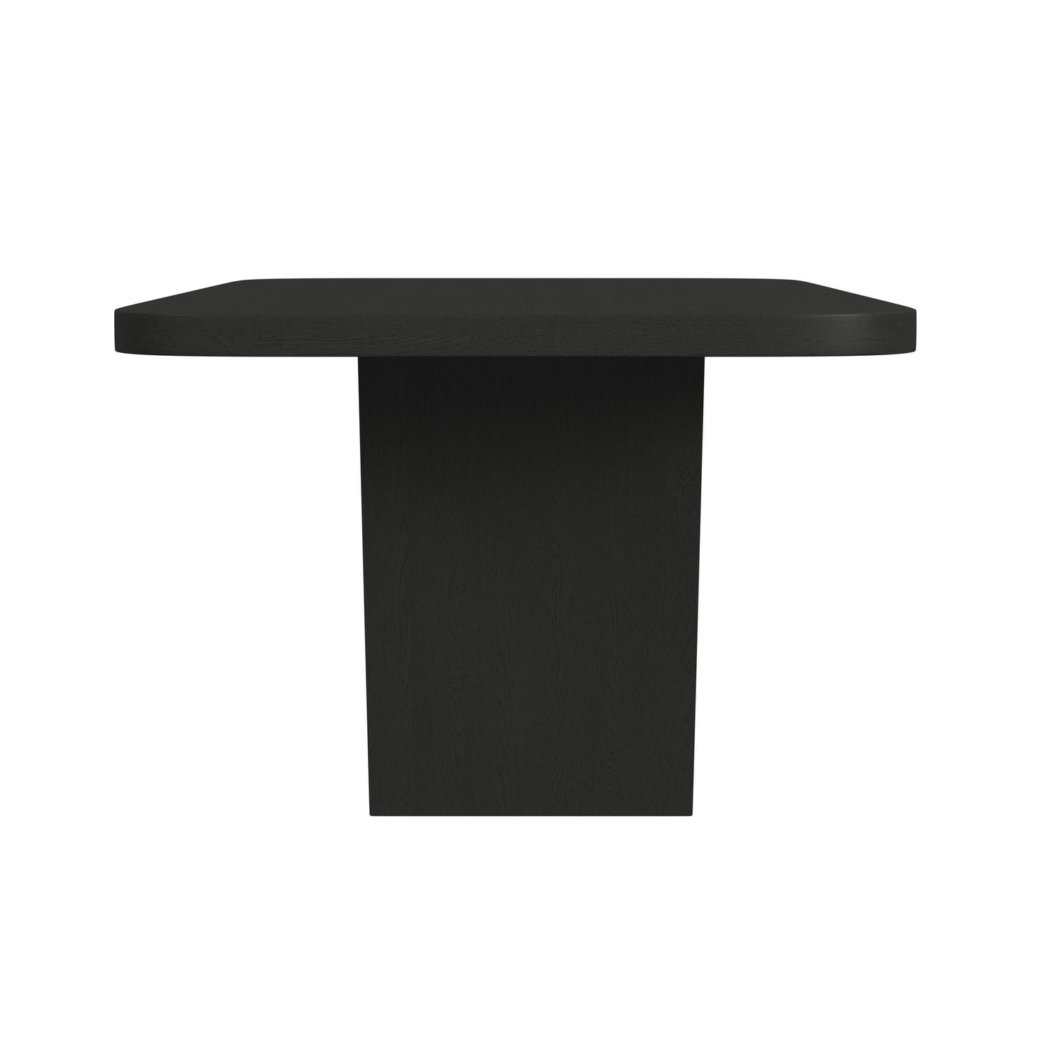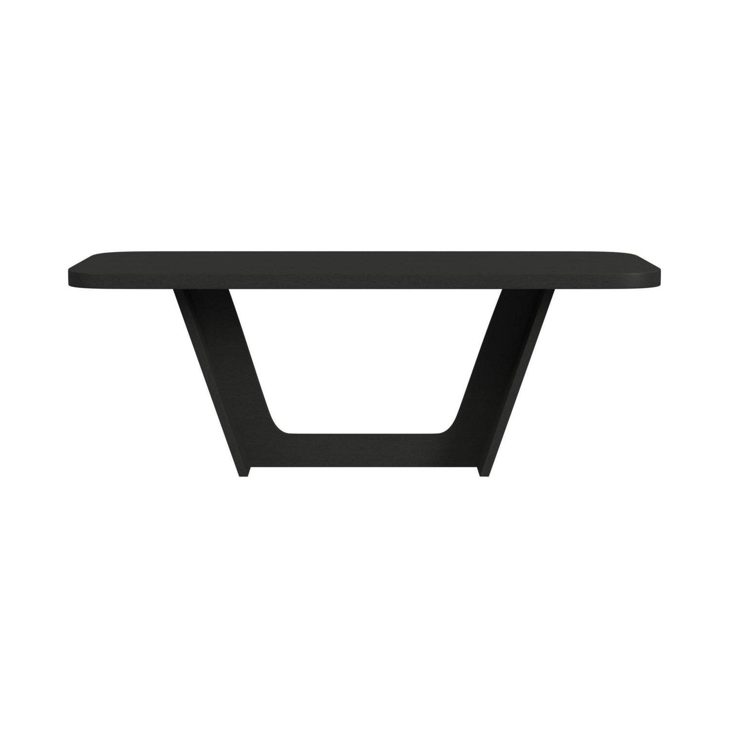Create an open and inviting dining space with the Ridgemont Rectangular Dining Table. This piece artfully blends geometric and organic shapes by showcasing a rectangular tabletop with gently rounded corners. The table's base easily becomes a focal point with its angled supports, while simultaneously creating an airy feeling with its open nature. The veneered, dark toned finish furthers this piece's appeal by simplifying maintenance. For a practical, versatile, and charming addition to the heart of your home, the Ridgemont Rectangular Dining Table satisfies on all fronts.