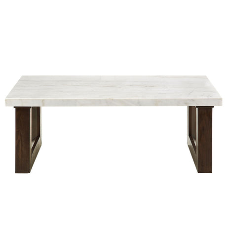 Edwyn - Dining Table With Marble Top - White Natural Marble Top & Brown Finish