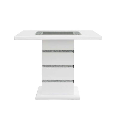 Elizaveta - Counter Height Table - Gray Velvet, Faux Crystal Diamonds &White High Gloss Finish