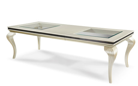 Hollywood Swank - Dining Table With Glass Inserts - Pearl Caviar
