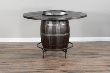 Homestead - Round Pub Table With Wine Barrel Base - Dark Brown
