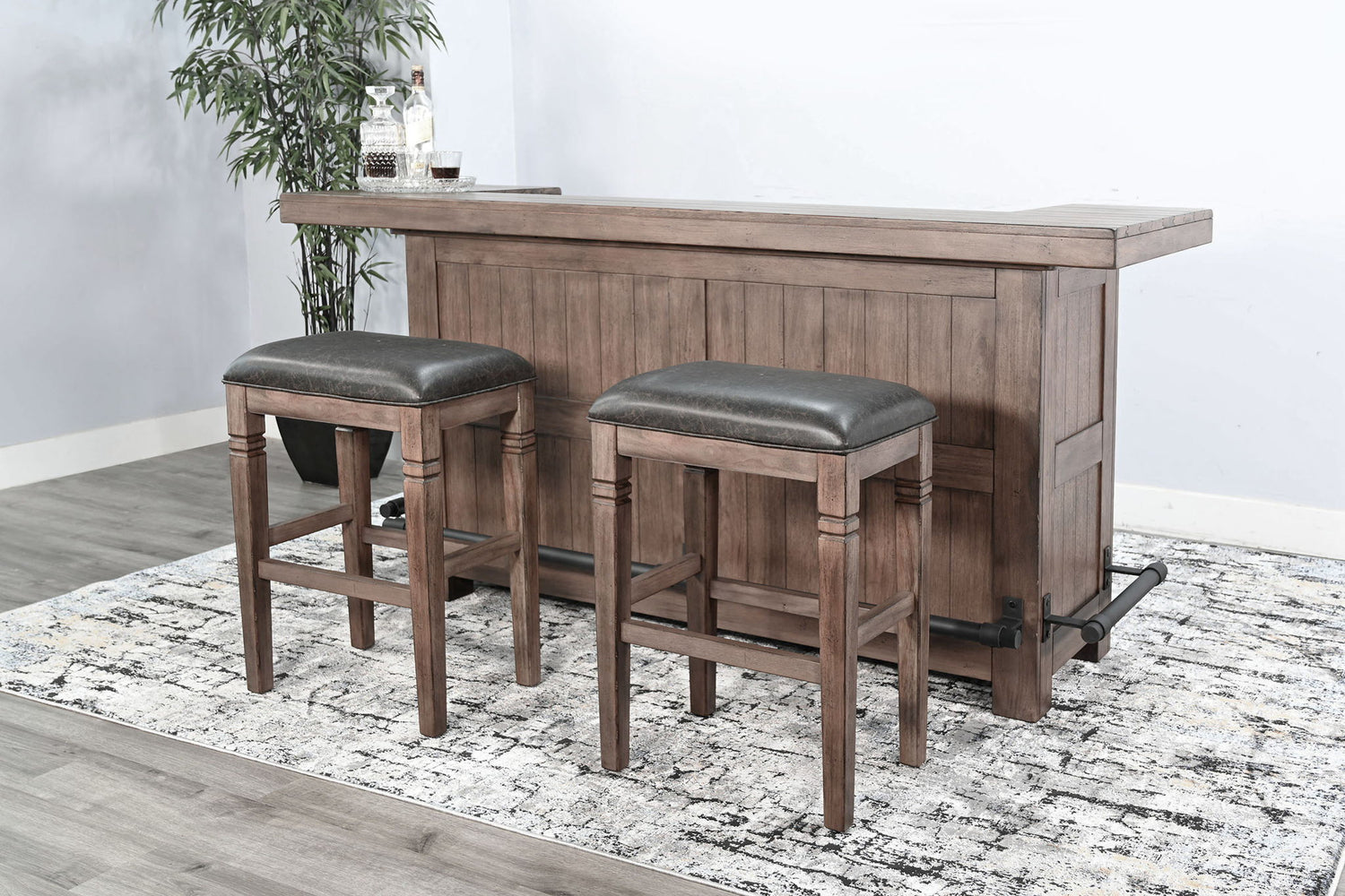 - Includes: Bar and two stools