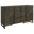 Transform your dining space with our stylish server, designed to enhance both functionality and style. This server features two door cabinets, three drawers, and two shelves, providing ample storage for your dining essentials. The sleek dark grey finish exudes modern elegance, while the brown felt-lined top drawers add a luxurious touch. Elevate your dining experience with this exquisite server, combining practicality and sophistication seamlessly.