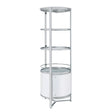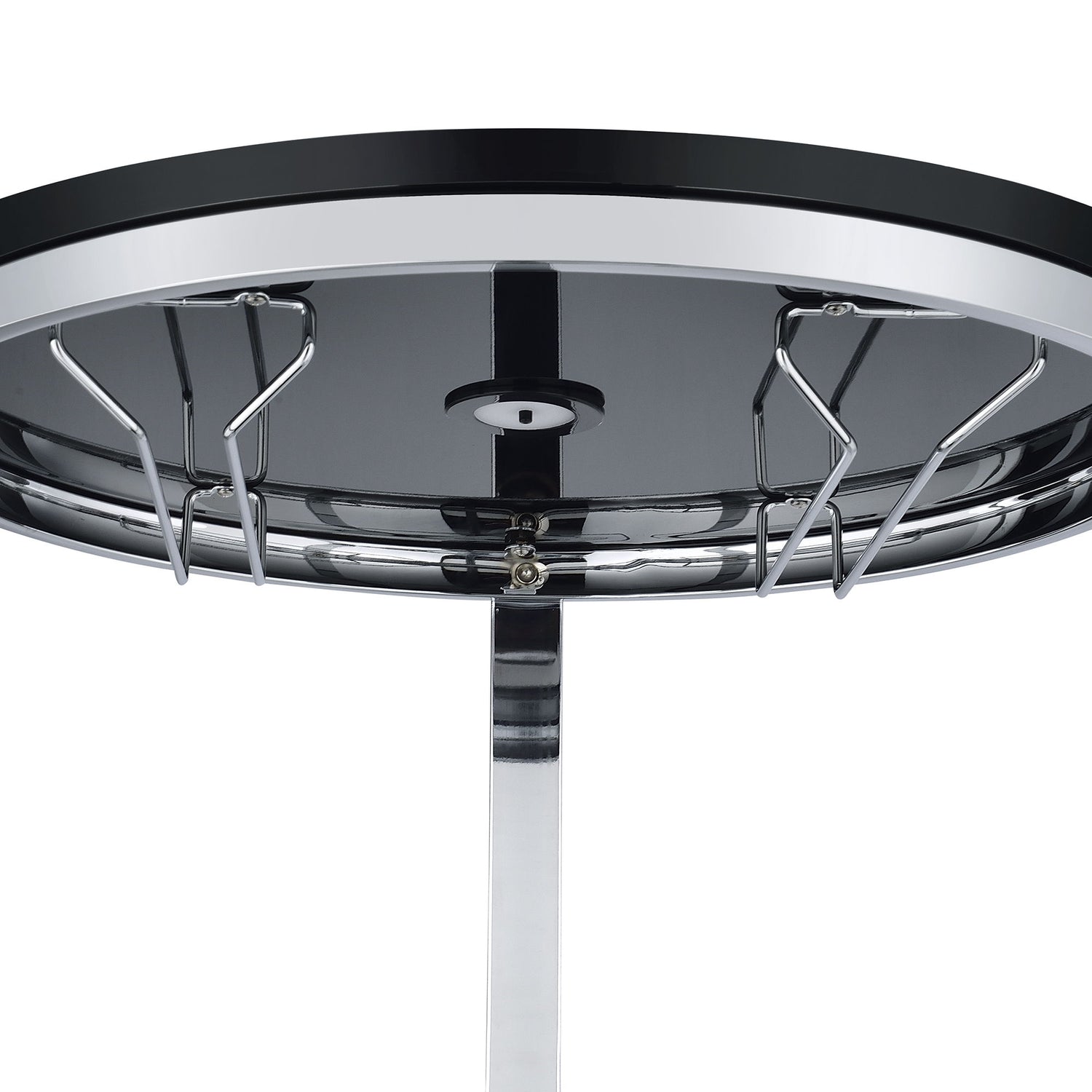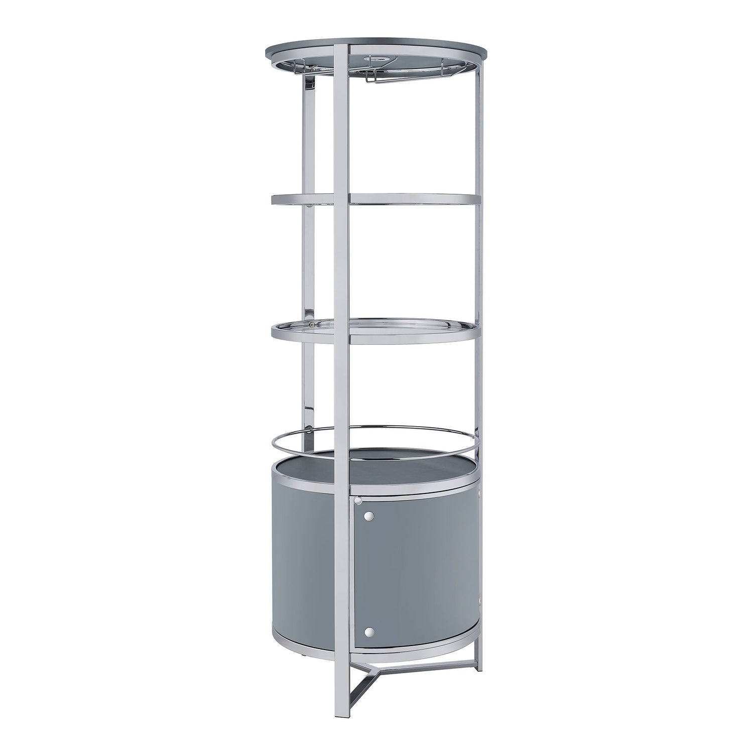 The Lalia Wine Rack with LED accents your dining space with modern style. The multiple open glass shelves allow you to decorate this piece to perfectly suit your home decor, perfectly complementing hidden storage in the bottom cabinet. Two wine glass holders and a convenient LED light adorn the top shelf, while the sleek, chrome finish of the cylindrical frame adds unique, eye-catching style. For a refined, stylish, and thoughtfully designed addition to your dining area, the Lalia Wine Rack with LED delivers.