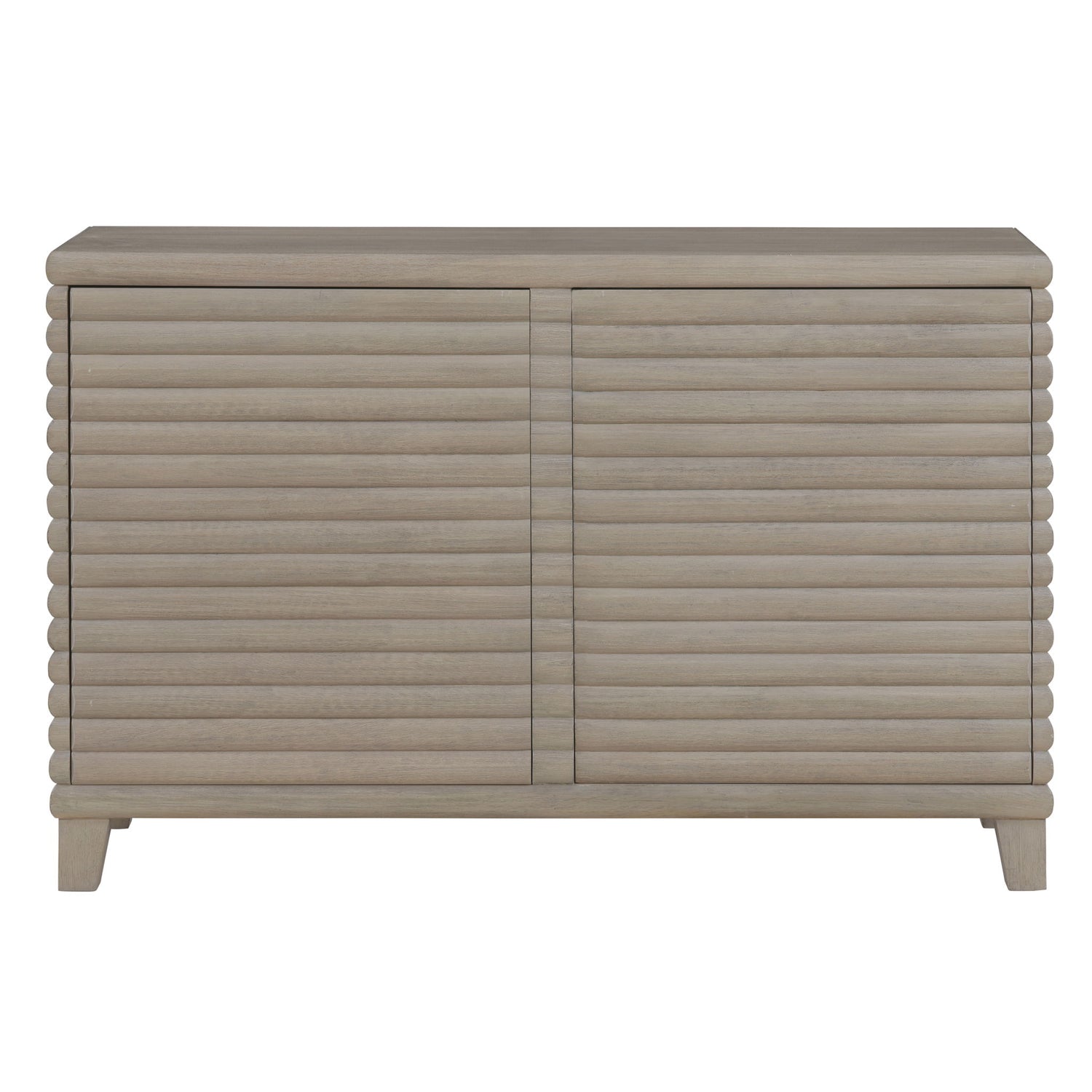 The Lily 54-inch Server offers modern elegance with its greige finish and horizontal reeded doors crafted from ash veneers and solid hardwoods, Soft-touch open doors offer effortless access to your dining essentials while creating a clean exterior without the need for hardware. The European concealed hinges maintain the server's polished appearance. Inside, four adjustable shelves offer versatile storage options for items of various sizes, ensuring practicality meets style seamlessly. Enhance your dining experience with the functional elegance of the Lily 54-inch Server.