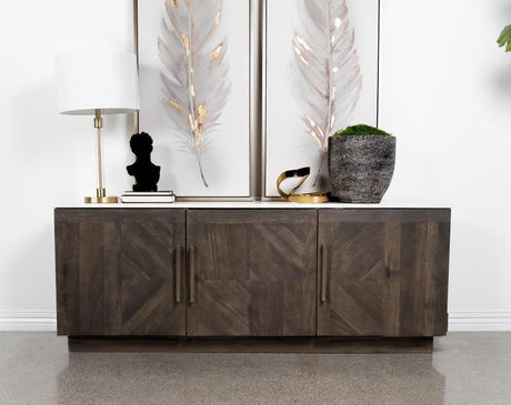 Dennis - 3 Door Marble Top Sideboard Buffet - Tobacco Gray