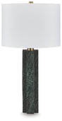 This table lamp is a master class in understated sophistication. Its sleekly dimensional base, crafted from rich green marble with subtle goldtone metal accents, adds a quietly exquisite touch to your favorite space. The statement-making lamp is a welcome addition wherever refined taste reigns supreme.