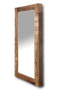 With and impressive size of 37 inch width and 80 inch height this hand -carved motif floor mirror gives a unique and eye-catching design element to any space. The multi-step hand-applied Natural matte Amber finish adds a touch of warmth and richness. Transparent finish highlights the stunning mango wood and showcases its natural beauty. The modern French cleat wall hanging hardware and beveled mirrored glass ensures this mirror is both secure and stylish. This floor mirror is a functional statement piece that will bring excitement to your home.