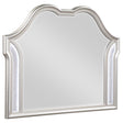 Create an instantaneous vanity setup with this elegant, glam, framed mirror. A double arched design crowns the top, offering curvaceous sweeping lines. The silver oak finished molded frame offers an eye-catching dimension that lends a stately presence when mounted above dressers. Glittering side panels elevate the look into a luxurious statement piece. Tucked within the classic and curved frame is a beveled mirror that offers extra depth to the overall look of this stylish glam bedroom piece.