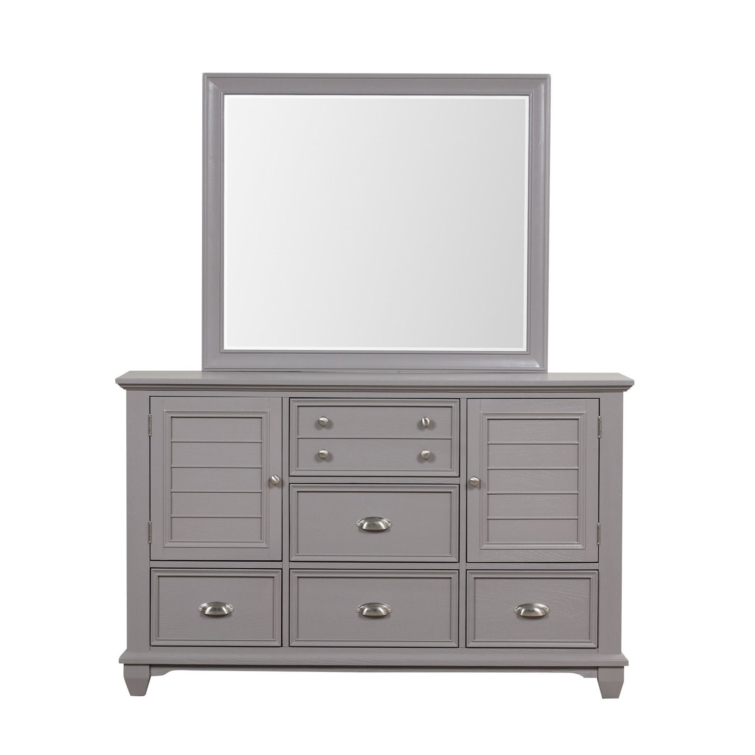 The Jamestown Dresser Mirror is a perfect blend of durability and style, designed to complement any bedroom decor. Expertly crafted from solid Acacia, premium manufactured woods, and authentic Oak veneers, this mirror ensures long-lasting durability while maintaining the natural elegance of real wood. The Jamestown collection exudes modern coastal charm with its clean, contemporary lines and crisp, brushed finish, bringing a serene, beach-inspired ambiance to your space. The mirror features a pristine, low-distortion beveled glass that is beautifully encased in picture frame-style moldings, offering a clean and sophisticated look that enhances the overall aesthetic of any room. This elegant mirror not only serves as a functional piece but also adds a touch of refinement to your bedroom.