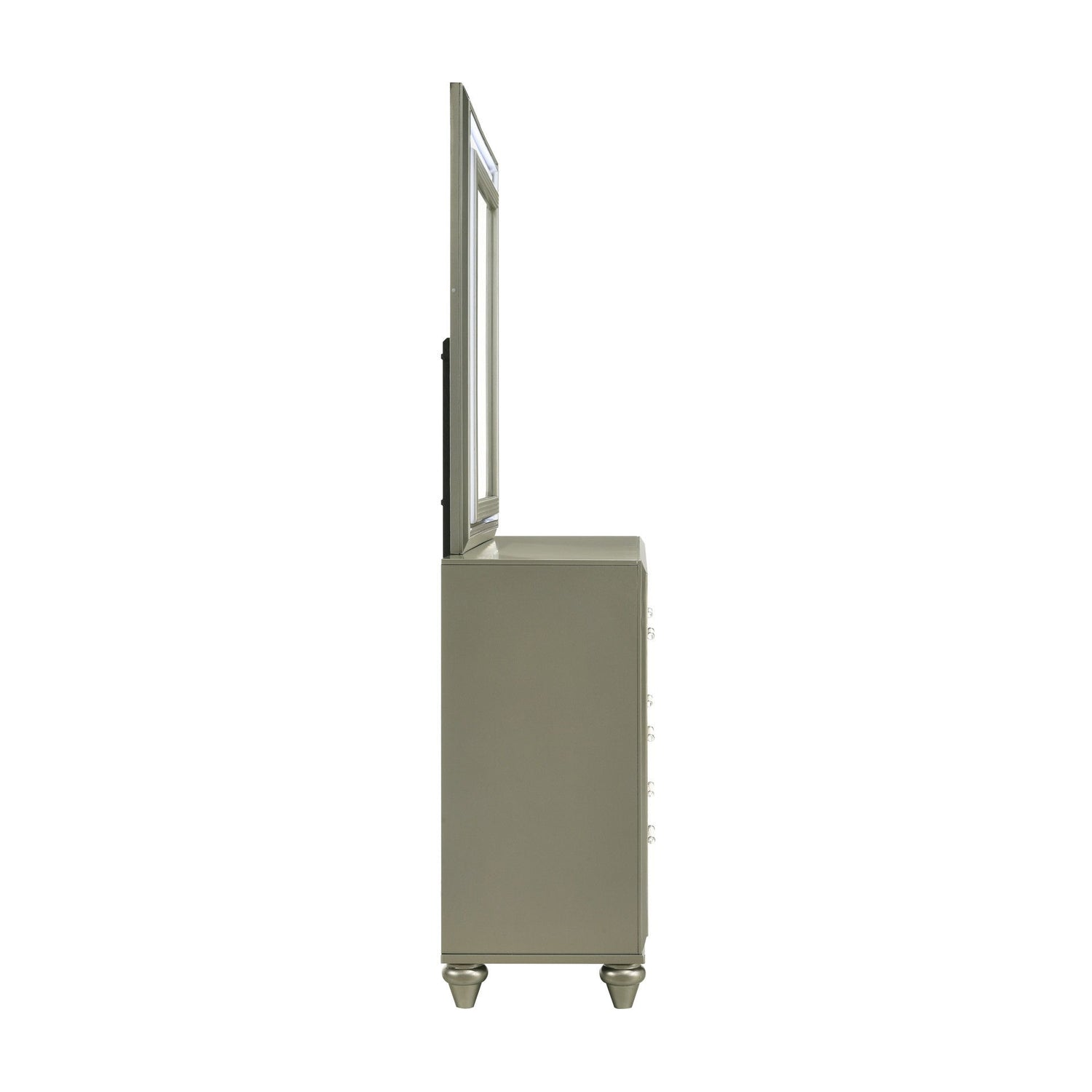 • Glossy Glam: High Gloss gray finish frames the low distortion mirror glass.