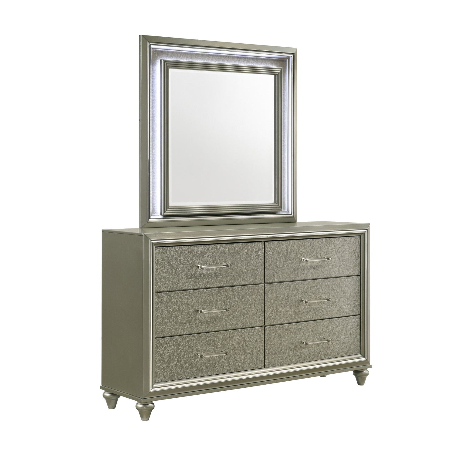 Experience the Lumina Mirror, a sturdy creation crafted from solid Rubberwood for enduring stability. Its sleek High Gloss gray finish accentuates the low distortion mirror glass, adding a touch of sophistication to any space. Illuminate your surroundings with the embedded LED lights, casting a luxurious glow that enhances the mirror's glamorous allure. Immerse yourself in elegance with the Lumina Mirror, a fusion of durability and opulence.