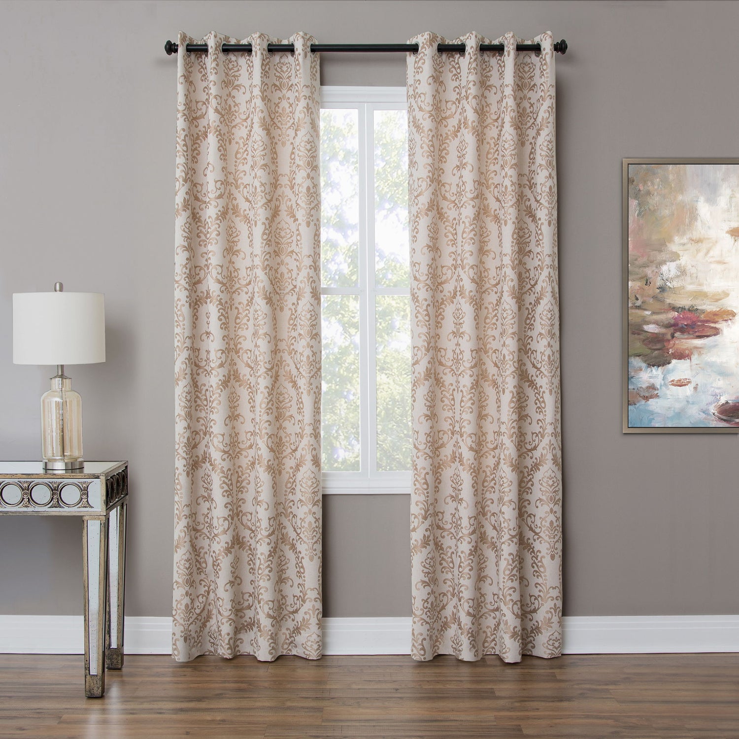 The Atchinson window panels will add a regal touch to your window. The beautiful panel is a contempory jacquard frame motif woven on a linen-like base. The subtle texture and sophistication of this pattern will add an instant highlight in to any room. Privacy is an added bonus while adding a lovely update to your asthetic. Crafted from quality 100% polyester and a polished stainless grommet header, this panel is modern in design and easy to install; just hang and slide. 1 piece per package.