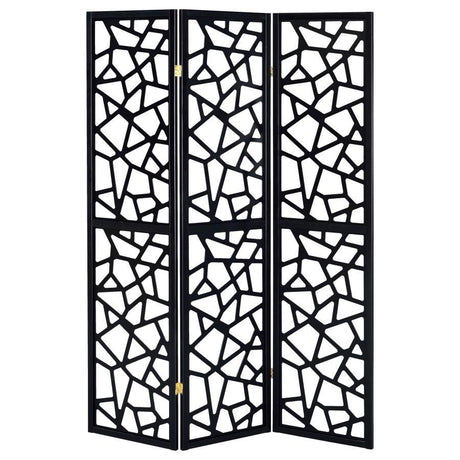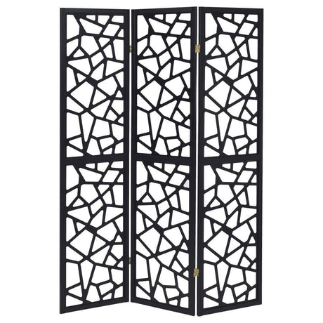 Nailan - 3-Panel Room Divider Folding Screen Open Mosaic - Black