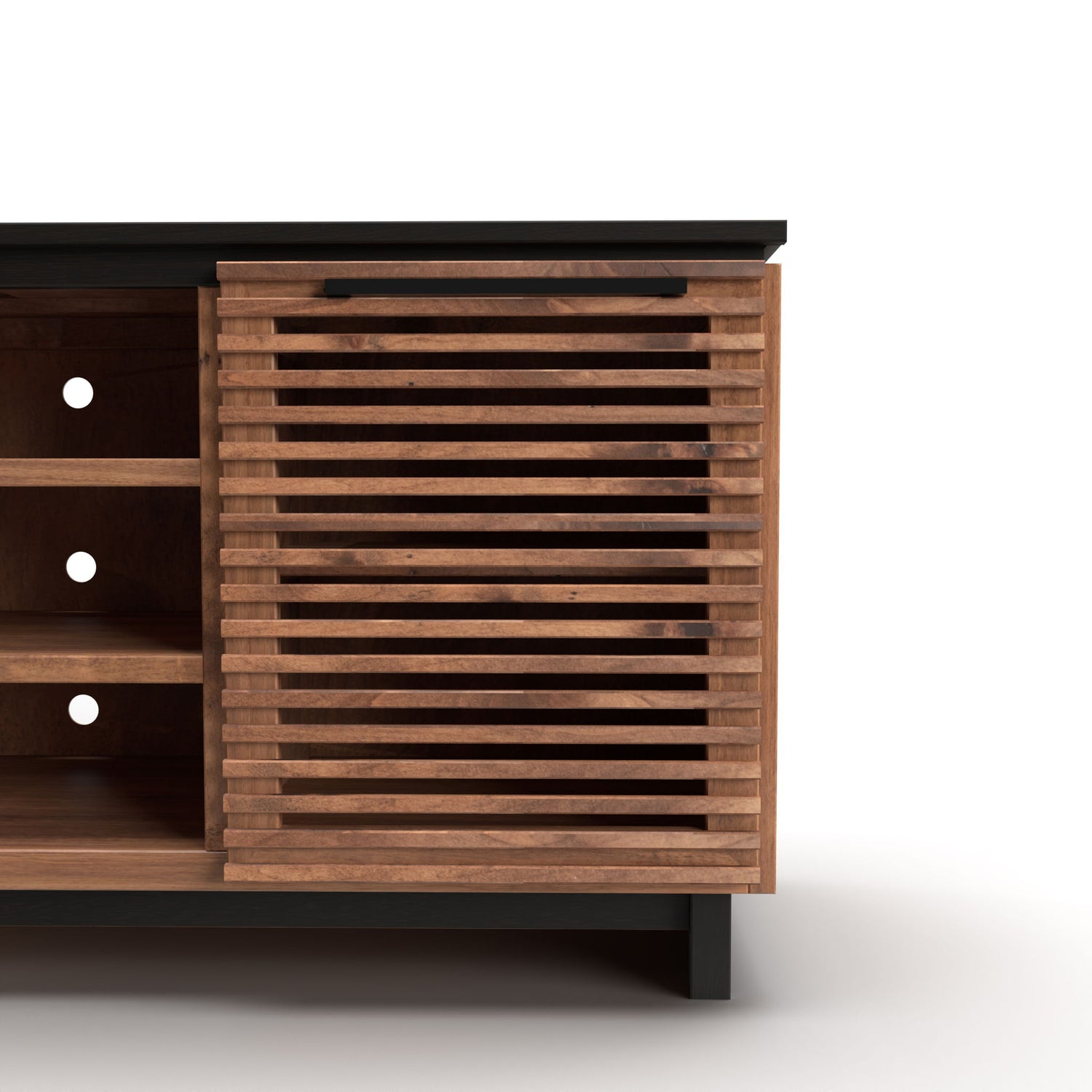 Our Graceland Console is cultured and chic, with a modern Hollywood appeal as classic as Elvis himself. This two toned stunner with slatted doors would have been a hit down in the jungle room. It holds up TV and has plenty of storage for media gear to entertain the night away with your favorite Elvis movie.