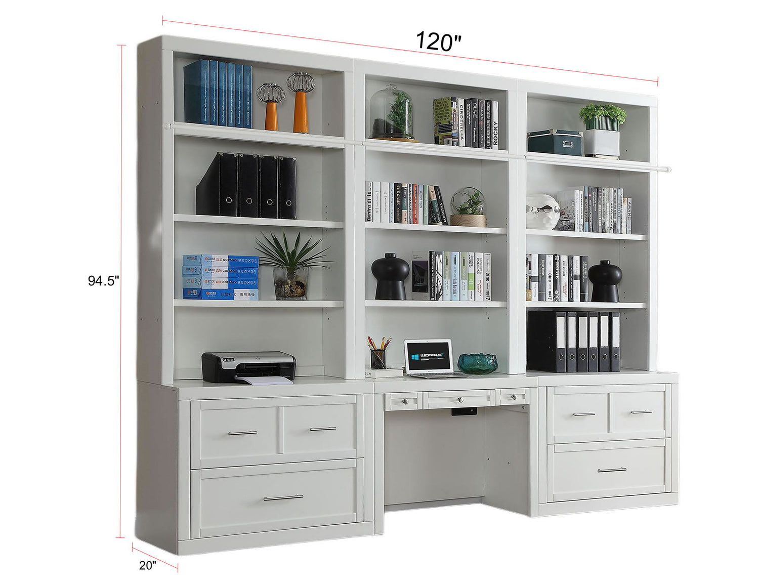 Catalina - 9 Piece Workspace Library Wall - Cottage White