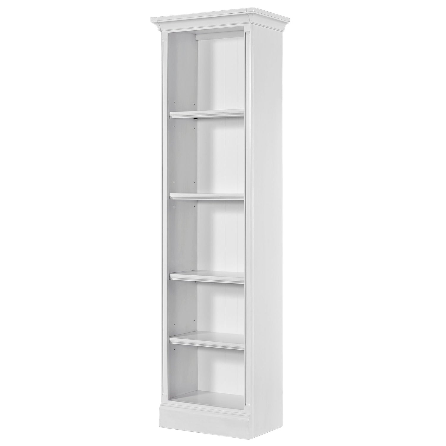 This bookcase provides the perfect blend of style and functionality. The gorgeous effortless white finish over birch veneers is contrasted by a medium roast brown finish and accented with burnished nickel hardware, creating a unique and eye-catching piece that is sure to elevate any room. The back panels can be reversed for two distinct looks, and the removable side crown moldings allow bookcases to be bunched together for a more customized and cohesive look. Whether you're using it in your living room, home office, or bedroom, our bookcase provides ample storage space for your books and decor while adding a stylish touch to your home.
