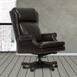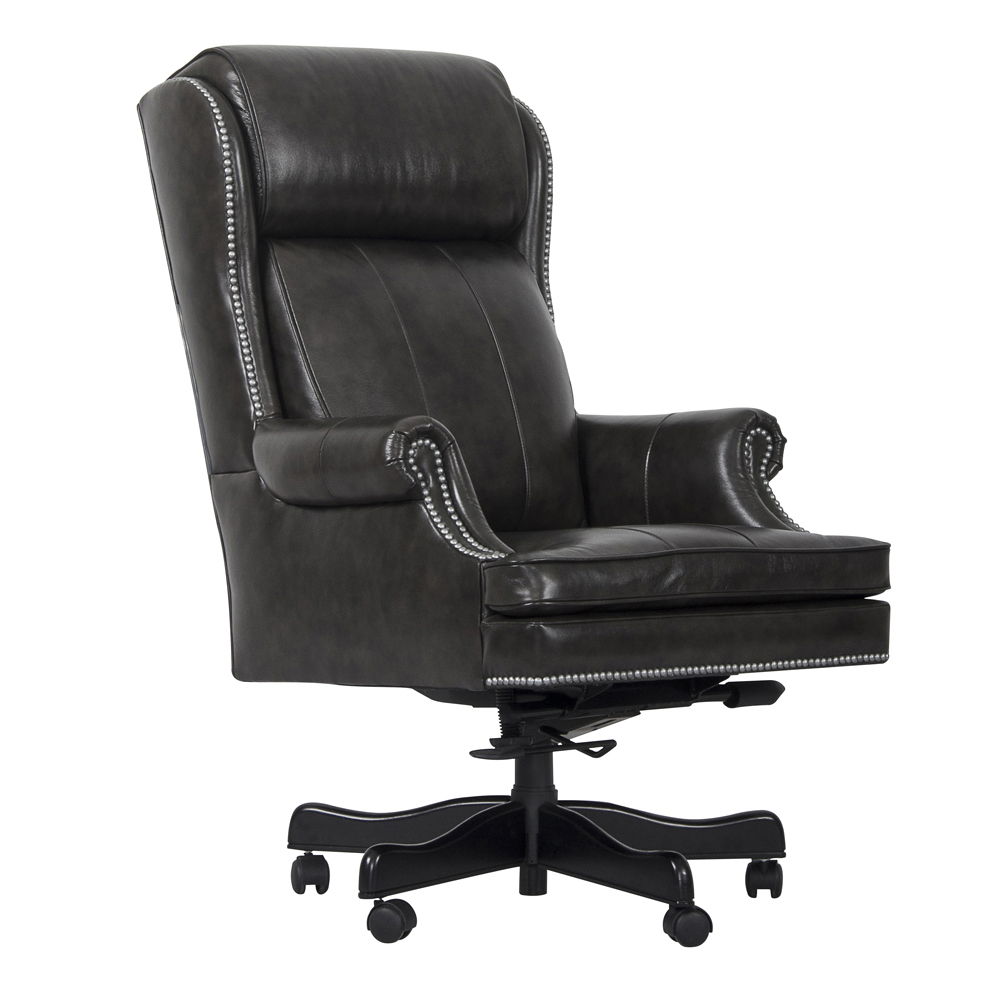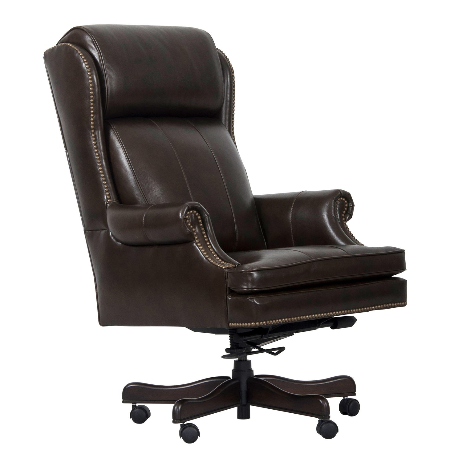 Combining the beauty of an executive chair with unsurpassed functionality, this leather desk chair adds handsome distinction to any workspace. Its plush padding and soft leather cover ensure hours of comfort while stylish design detailing makes a timeless fashion statement. Adjust its seat height to fit your unique needs and enjoy the effortless movement of its classic wood base with five casters.