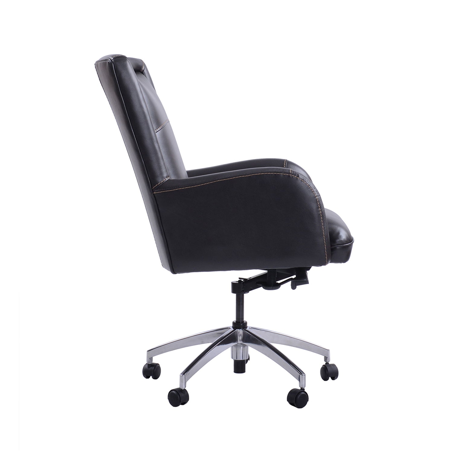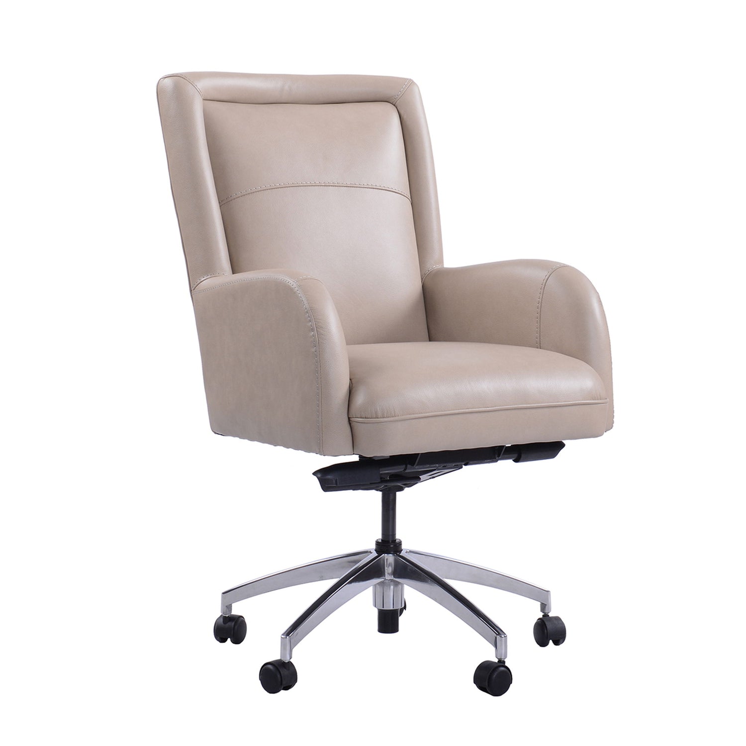 Add fashion and function to your workspace with the timeless style of this desk chair. Crafted in a Top Grain Leather, it features a five-wheel castered base that ensures mobility while its innovative design delivers unsurpassed comfort and versatility. No matter what you’re working on, the task will feel easier with the support of this multifunctional chair.