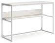 Bring your vision of a modern home workspace to life with this sleekly designed home office desk. Its linear construction and white finish keep things minimal. A small shelf along the back rounds out the versatile, striking desk.