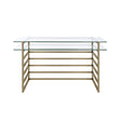 Whether you're working from home or scrawling a quick to-do list, you'll be doing it all in style with this Shona desk. The luxurious glass top combines with antique gold finish base, this piece is not only elegant but also beautiful. Classic but glamorous, you'll find efficiency when working on this writing desk.