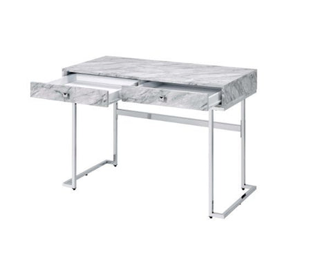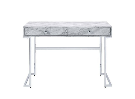Tigress - Writing Desk - White Printed Faux Marble & Chrome Finish