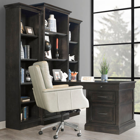 Wildenauer - 4 Pc. - Home Office Desk And Return, Swivel Desk Chair, Bookcase - Brown / Black