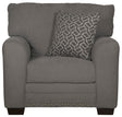 The contemporary farmhouse styling of the Cutler chair brings comfort and style to any room. Built for comfort, the seat is constructed of individually pocketed coils encased in foam and topped with a layer of cool gel infused memory foam for a long lasting, comfortable and supportive seat. Covered in a soft, durable 100% polyester body fabric in a light gray color and accented with a coordinating designer toss pillow, the Cutler brings style to any room. The look is completed with pewter finished nailhead accents along the base.