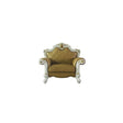 KD Back, w/1 Pillow • Tight Back & Loose Seat Cushion (1+2) • Diamond Tufted, Nail-head Trim, Oversized Crown & Raised Scrolled Trim: Antique Pearl w/Gold Brush (Backrest, Front Armrest & Base) •• Construction] Pocket Coil Seat; Inner Frame: Wood (Solid Wood+Ply); Foam (), Moldings: Poly-Resin, Box Seat Cushion w/Welt Trim (Not Reversible), Padded Scrolled Base • BACKREST: Arched (Center Diamond Tufted) • ARMREST: Rolled Styled w/Scrolled Front • Oversized Queen Anne Leg: Poly-Resin Moldings ••• Material: PU () •• Pillows: Assorted Shapes & Patterns (Removable Covers)