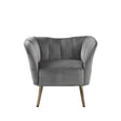 With its transitional design, the Reese accent chair is sure to please. Whether you're going for a classic traditional style or a more modern look, its versatile design ensures that it can fit within various aesthetic styles. It features a barrel backrest with channel tufting. Its beautiful gold metal spindle legs and velvet upholstery adds a flair of elegance and sophistication. Available in two colors, burgundy and gray velvet.