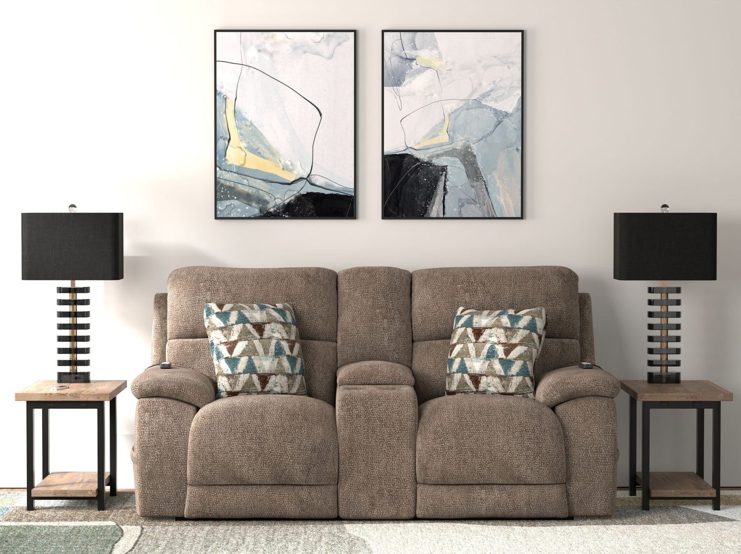 Joya - Power Headrest Power Lay Flat Reclining Console Loveseat With CR3 Heat/Massage/Lumbar/ZG - Mushroom Product Features Pub-Back Pillow Arm Design Soft Chunky Polyester Fabric Zero-Gravity Power Recline Shiatsu Massage Feature Power Headrest/Power Lumbar Comfort Coil Seating featuring Comfor-Gel Steel Seat Box
