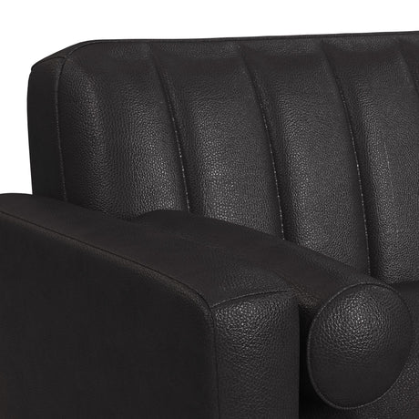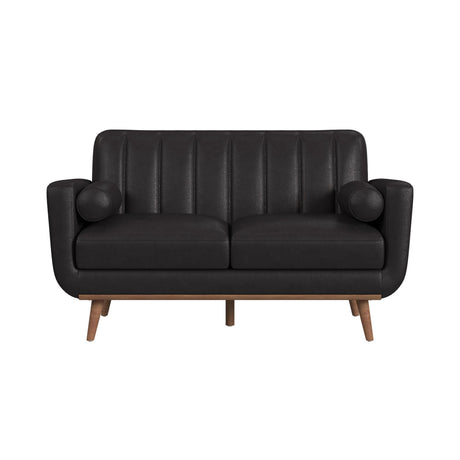 House - Beatrice Loveseat - Tan PU, Black PU & Charcoal Finish