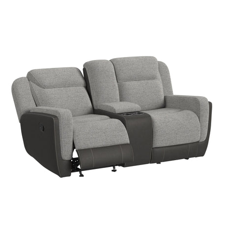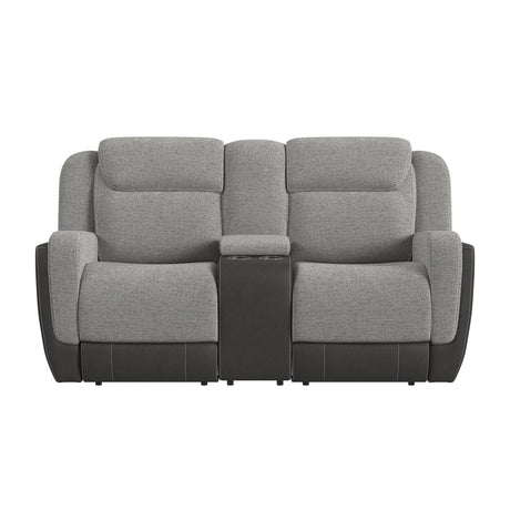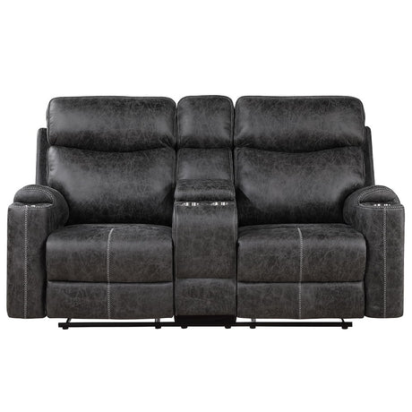 Hirah - Motion Loveseat With Console & USB Port - Dark Gray Polish Microfiber