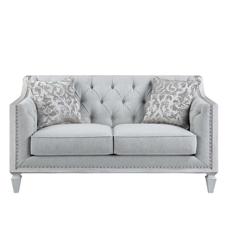 Katia - Loveseat - Light Gray Linen & Weathered White Finish