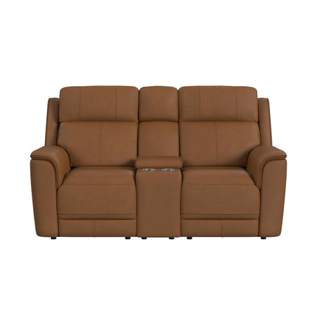Mustang - Power Motion Loveseat With Console, Power Headrest And Lumbar - Butternut