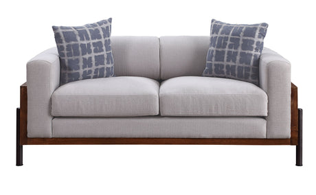 Pierce - Loveseat With 3 Pillows - Beige Fabric & Cherry Finish