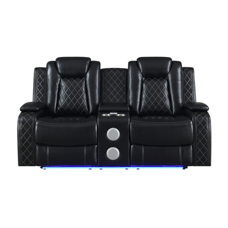 Oportuna - Dual Power Console Loveseat - Dark Brown