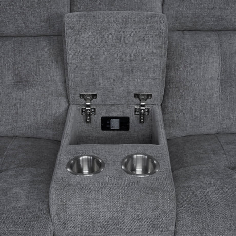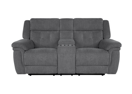 Raelynn - Upholstered Track Arm Motion Loveseat - Gray