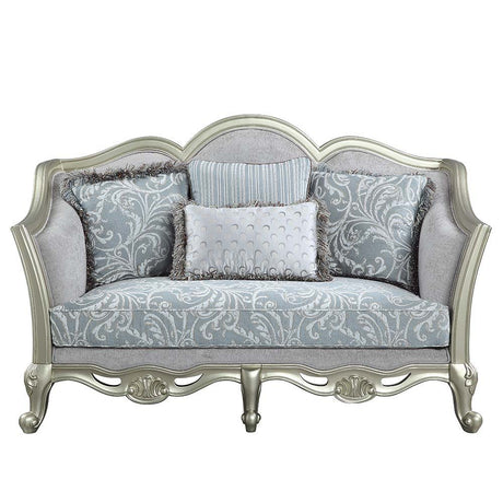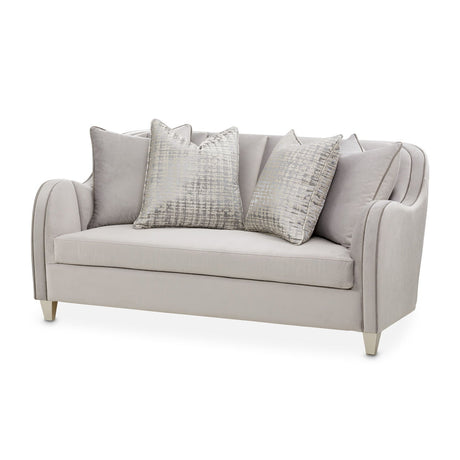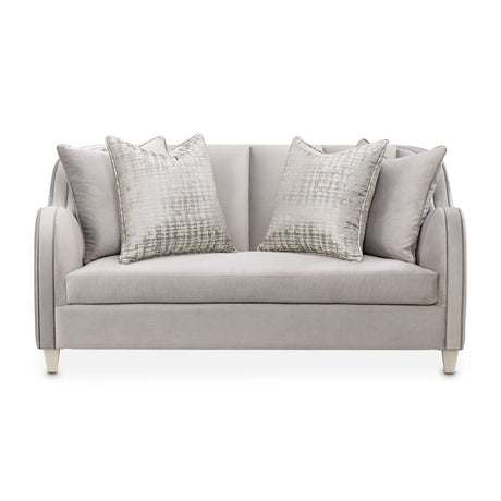 Qunsia - Loveseat - Light Gray Linen & Champagne Finish