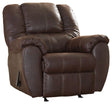 Rock the cool look of leather and the warm feel of fabric with this rocker recliner. Sporting sumptuously thick cushioning, fashion-forward jumbo stitching and a richly tailored aesthetic, this smartly priced recliner with gentle rocking motion is a bestseller for good reason.