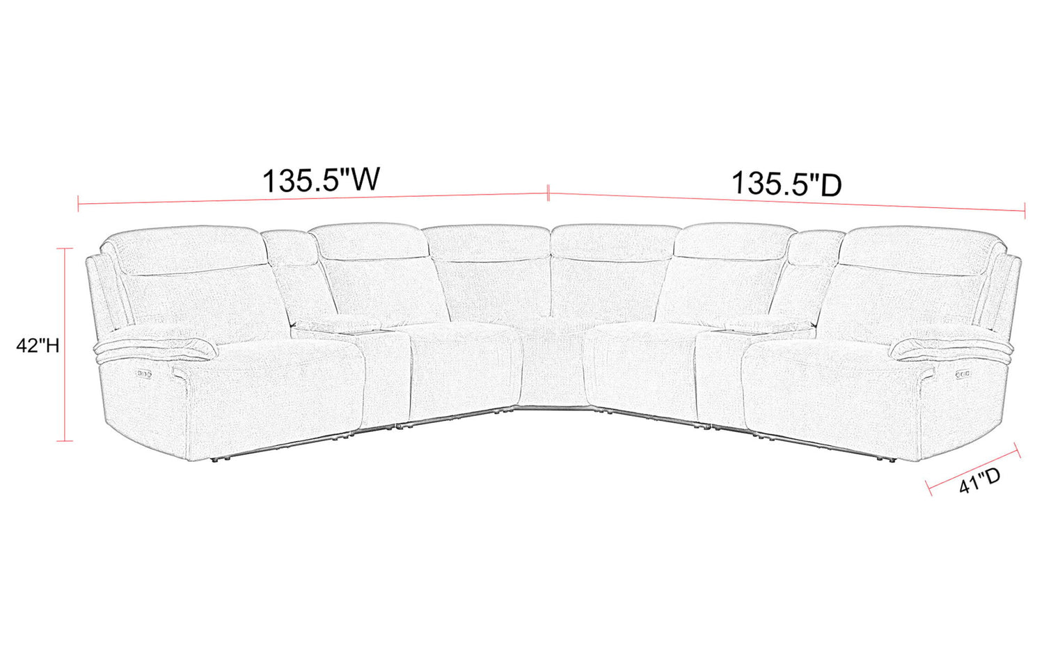 Alpine - 6 Piece Zero Gravity Power Reclining Sectional With Power Adjustable Headrests - Airy Snow