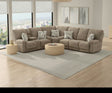 Beacon - Power Lay Flat Triple Reclining Sofa With DropDown Table / Storage Arm / Extended Ottoman - Mushroom is backordered and will ship as soon as it is back in stock.