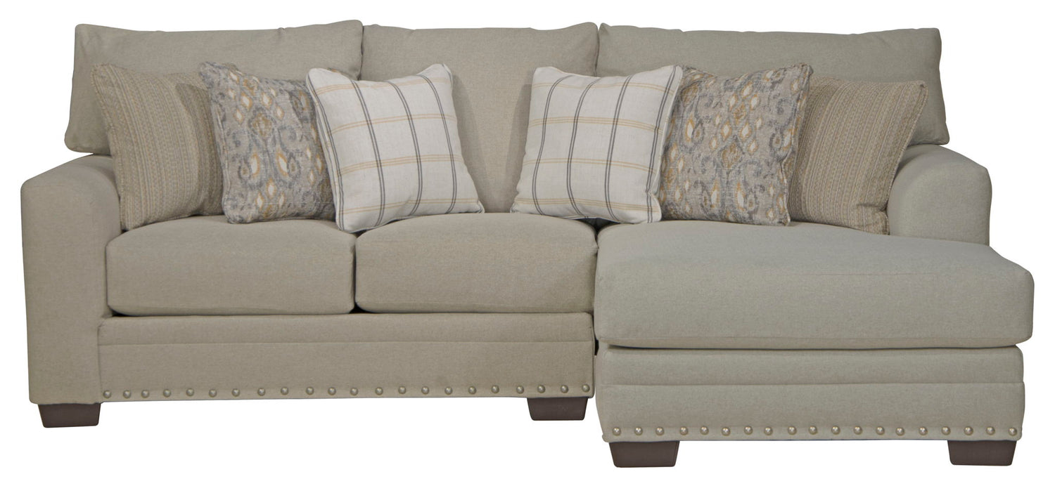 The contemporary farmhouse styling of the Middleton sectional brings comfort and style to any room. The seats are constructed of individually pocketed coils encased in foam and topped with a layer of cool gel infused memory foam for a long lasting, comfortable and supportive seat. Covered in a soft, durable 100% polyester fabric in a light gray color the Middleton is durable enough for use in a family room, basement or bonus room. The exceptional styling shows through with the included decorator accent pillows and nickel nail head accents along the base rail.