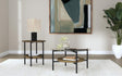 Bring a touch of modern farmhouse style to your living room with this coffee table set, blending sleek metal frames with warm wood accents. The set features a striking design with round tempered glass tops, offering a sophisticated contrast to the powder-coated metal frames. Each table includes a lower tray-style shelf with a brown wood grain laminate veneer finish, perfect for displaying decor or storing essentials. The sturdy metal construction ensures long-lasting durability, while the minimalist aesthetic complements various living spaces.