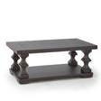 Architectural design and simplicity become one in the Dory Occasional Table Collection. The Dory Cocktail Table features a plank effect top accented by the unique pedestal base for a look that can't be ignored. Sturdily constructed of hardwood solids and mindi veneers in a subtle ebony finish, the table also has a bottom base shelf for extra storage or display. Your purchase includes one cocktail table.