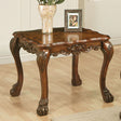 The Dresden traditional end table, reflects highly decorative details, oversized claw feet, decorative carving inlay veneers on apron, all carefully made with selected materials. This table will be the showpiece of any room environment.