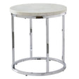 • Styling details include soft round shapes with white marble tops and chrome bases give tables a soft contemporary feel that will add sparkle to any room