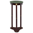 Add a refined touch to any room with this elegant accent table, ideal as a decorative stand or pedestal. A polished green marble top introduces organic texture and visual contrast, while the deep brown wood base provides classic warmth. Gold-tone accents elevate the traditional aesthetic, making it a charming fit for formal living spaces, hallways, or entryways. Built with solid and engineered wood, this compact piece blends timeless design with long-lasting quality.